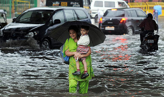 印度首都新德里10日早晨遭到大雨襲擊,致使城市交通癱瘓。許多政府機(jī)構(gòu)、公司和商店因工作人員無(wú)法上班而關(guān)閉。
