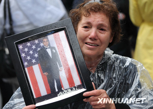 9月11日,在美國紐約世貿(mào)中心遺址附近, 一名婦女手持遇難親人的照片,參加“9·11”恐怖襲擊事件八周年紀(jì)念活動。當(dāng)日,紐約舉行“9·11”恐怖襲擊事件八周年紀(jì)念活動,遇難者的親屬、友人紛紛來到世貿(mào)中心舊址緬懷故人。新華社記者谷欣容攝