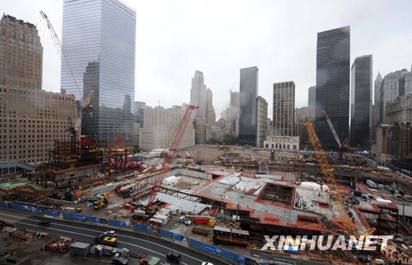 這是2009年9月11日拍攝的美國紐約世貿(mào)中心重建工程工地。當(dāng)日,紐約在世貿(mào)中心舊址附近舉行“9·11”恐怖襲擊事件八周年紀(jì)念活動,遇難者的親屬、友人紛紛來此緬懷故人。 新華社記者谷欣容攝