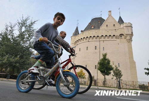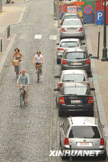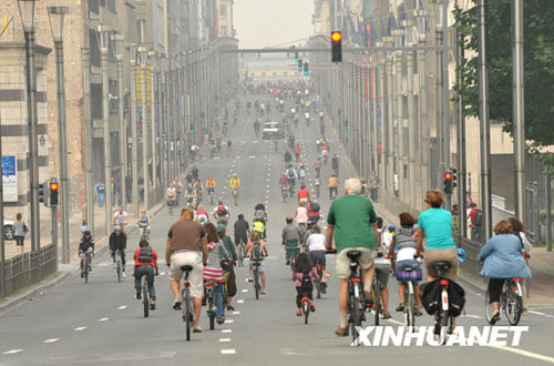 9月20日,在比利時首都布魯塞爾,人們騎自行車上街。當天是布魯塞爾一年一度的“無車日”,政府鼓勵市民騎自行車或乘坐公共交通工具出行,樹立綠色城市交通的環(huán)保理念。新華社記者武巍攝