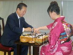 日本民主黨干事長小澤一郎23日下午在東京臺場與女圍棋手謝依旻對弈。(共同社)