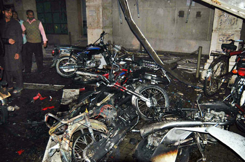爆炸發(fā)生在拉合爾一個名為“月亮”的市場內一所警察局外。爆炸導致鄰近多間商鋪和一家銀行起火,一些停在附近的車輛或被炸毀,或被引燃。爆炸還導致該地區(qū)電力供應中斷。兩次爆炸僅相隔30秒鐘。