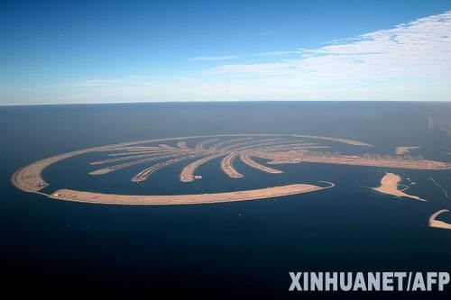 聳立在迪拜的眾多獨(dú)特建筑之一,遠(yuǎn)處為巨型人工島——棕櫚島一角。新華社/法新