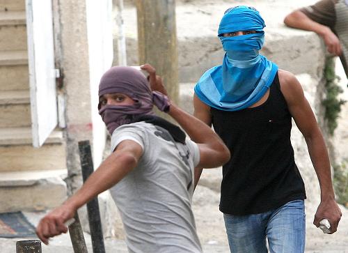 10月9日,以色列警察與抗議者在位于東耶路撒冷的一個(gè)社區(qū)內(nèi)發(fā)生沖突,造成多人受傷。這是抗議者向警察投擲石塊。(10月9日攝)