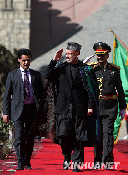 阿富汗總統(tǒng)卡爾扎伊(中)