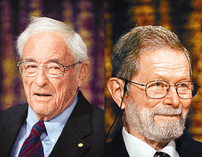 今年獲得諾貝爾物理學(xué)獎(jiǎng)的博伊爾(左)和史密斯(右),獲獎(jiǎng)成績(jī)?cè)獾劫|(zhì)疑。(資料圖片)