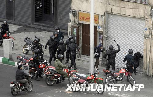 12月27日,在伊朗首都德黑蘭,安全人員包圍反對派支持者。據(jù)伊朗改革派一家網(wǎng)站27日報道,在今年6月總統(tǒng)選舉中失利的總統(tǒng)候選人、前總理穆薩維的侄子阿里·穆薩維當(dāng)天在首都德黑蘭發(fā)生的警方與反對派支持者的沖突中身亡。到目前為止,伊朗政府沒有證實(shí)這一消息。新華社/法新