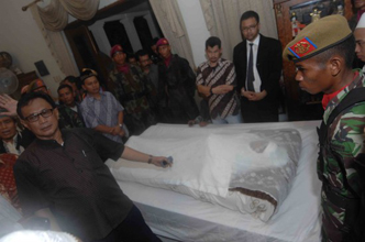 12月30日,在印尼首都雅加達(dá),瓦希德的親友向其遺體告別。