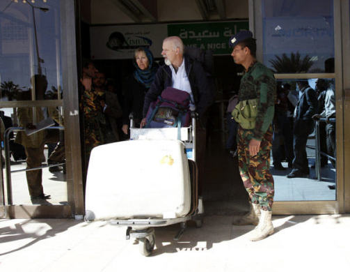1月5日,一名外國人走出警察把守的也門薩那國際機(jī)場(chǎng)。新華社/路透