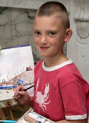 據(jù)悉,這位名叫基隆·威廉姆森(Kieron Williamson)的男童居住在英國東部小城霍爾特,他有著令其他畫家傾羨的藝術(shù)才華和繪畫技巧。當(dāng)?shù)厝税阉彤吋铀飨啾,后者幼年成才并成?0世紀(jì)最受矚目的畫家。