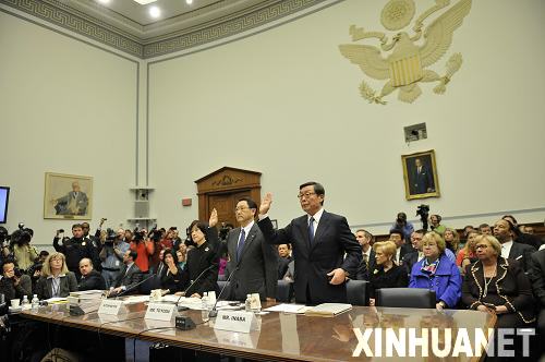 2月24日,在美國(guó)首都華盛頓國(guó)會(huì)眾議院,豐田公司總裁豐田章男(前排中)出席聽(tīng)證會(huì)。當(dāng)天,美國(guó)國(guó)會(huì)眾議院監(jiān)督和政府改革委員會(huì)就豐田召回事件舉行聽(tīng)證會(huì)。新華社記者 張軍 攝