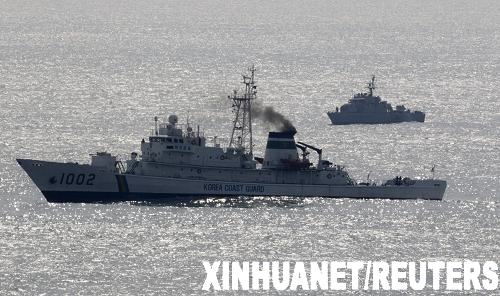 3月27日,一艘韓國軍艦(前)與一艘韓國海事警察巡邏船在朝鮮半島西部海域執(zhí)行搜救任務(wù)。韓國YTN電視臺27日援引總統(tǒng)府青瓦臺消息人士的話報道說,26日晚沉沒的韓國海軍“天安”號警戒艦很可能是因遭遇水雷而發(fā)生爆炸,爆炸產(chǎn)生的破洞最終導(dǎo)致警戒艦沉沒。新華社/路透