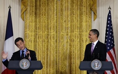薩科齊在白宮與美總統(tǒng)奧巴馬會晤