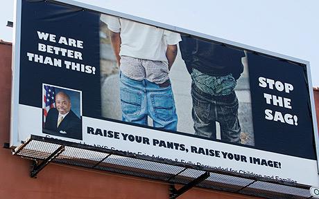 據(jù)英國《每日電訊報》報道,美國年輕人時興穿低腰褲,不少人認為低腰褲要低得露出內(nèi)褲才夠酷,但紐約一名參議員看不慣,發(fā)布一則醒目“拉起你的褲子”的廣告,告誡年輕人不要讓褲子掉下去。