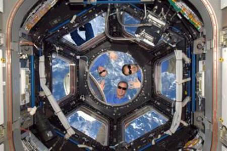 而地球上的瘋狂舉動還感染了宇航員們。三名在國際空間站工作的航天員就在當(dāng)天擺出烏龍照片。照片中,三位宇航員穿著T恤完成了一次太空行走,他們還對鏡頭擺出招手和微笑的姿態(tài),令人驚訝不已。