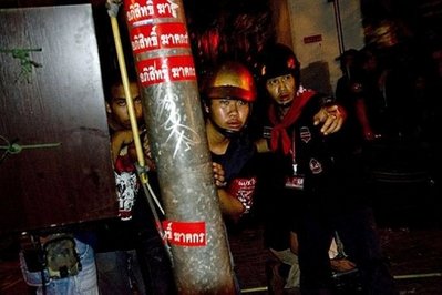 泰國軍隊19日清晨進(jìn)駐曼谷市是隆路(Silom)后,紅衫軍這三天來緊守拉差帕頌路口(Ratchaprasong)鬧區(qū)示威地點,并運來大批竹子、輪胎、網(wǎng)子圍住示威地點路口,與是隆路就隔著一條馬路,緊張氣氛每天都在升高,軍隊將展開鎮(zhèn)壓的傳聞越來越多。