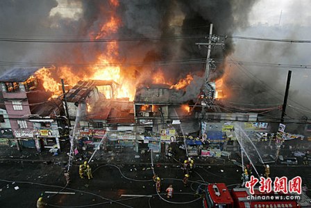 據(jù)臺(tái)灣“中廣新聞網(wǎng)”報(bào)道,菲律賓首都馬尼拉郊區(qū)奎松市的一座貧民窟25日下午慘遭火災(zāi)肆虐,大火一發(fā)不可收拾,數(shù)百棟房屋付之一炬,上萬(wàn)人無(wú)家可歸。