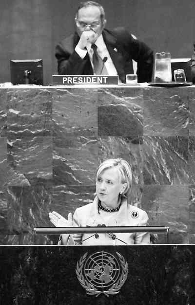 5月3日,在美國紐約聯(lián)合國總部,美國國務(wù)卿希拉里·克林頓在《不擴(kuò)散核武器條約》審議大會(huì)上發(fā)言。新華社記者 申宏攝