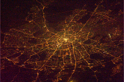 報道稱,日本宇航員野口聰一拍攝了這組圖片,他在國際空間站飛行到莫斯科上空約220英里的高度紀(jì)錄下了城市的夜景。