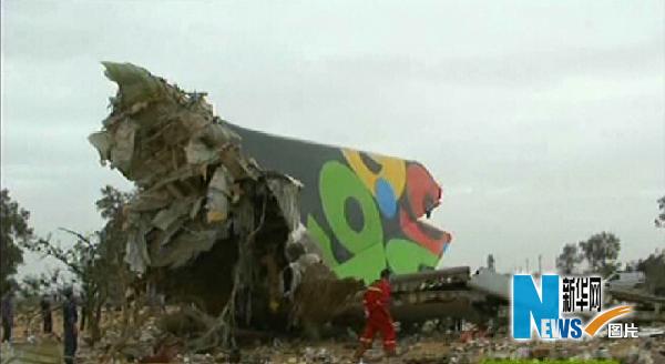 這張利比亞國家電視臺(tái)5月12日的電視照片顯示,利比亞非洲航空公司的一架客運(yùn)班機(jī)墜毀在黎波里機(jī)場附近。 利比亞非洲航空公司12日說,當(dāng)天早晨6時(shí)左右,8U771航班班機(jī)由南非約翰內(nèi)斯堡飛抵的黎波里,在試圖降落的過程中突然墜毀。據(jù)報(bào)道機(jī)上有93名乘客和11名機(jī)組人員。新華社/法新