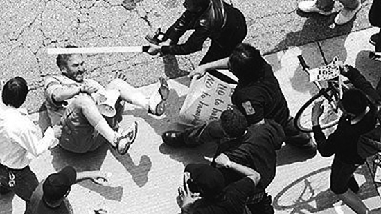 4月17日,美國白人至上主義者在洛杉磯示威游行時(shí),遭群眾討伐