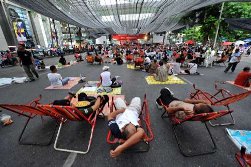 五千名“紅衫軍”成員繼續(xù)在曼谷商業(yè)區(qū)集會(huì)。