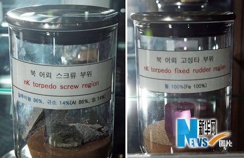 5月20日,在韓國首爾國防部會(huì)議室里展示著說明“天安”號(hào)沉沒原因的物件。當(dāng)日,韓國“天安”號(hào)軍民聯(lián)合調(diào)查團(tuán)公布正式調(diào)查結(jié)果稱,綜合各種證據(jù)來看,韓國海軍的“天安”號(hào)警戒艦是遭受朝鮮小型潛水艇發(fā)射的魚雷攻擊而沉沒的。新華社/聯(lián)合通訊社