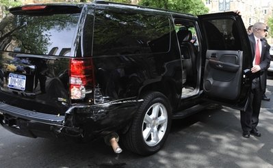 警方指出,事件發(fā)生時(shí),克林頓乘坐的車輛因公路前面發(fā)生意外而被迫減速,而后面車輛煞車不及,撞到他的座車。車后方明顯受損。