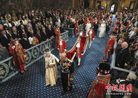 英國國會(huì)下院25日復(fù)會(huì),女王伊麗莎白二世宣讀了保守黨和自民黨組成的新聯(lián)合政府未來一年內(nèi)的施政大綱,其中“如何削減巨額財(cái)政赤字,恢復(fù)經(jīng)濟(jì)增長”成政綱最引人關(guān)注之處。