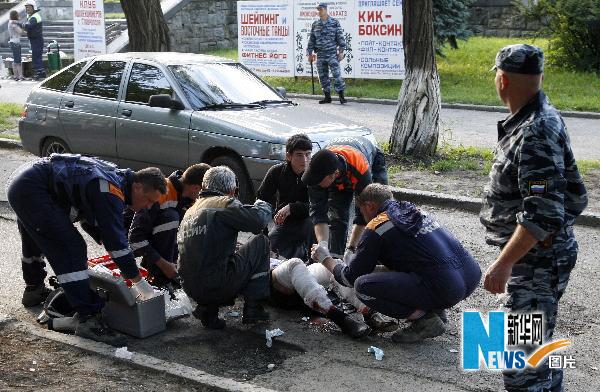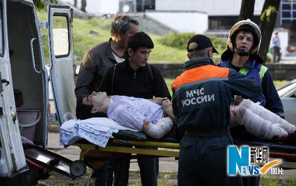 5月26日,救援人員在俄羅斯南部城市斯塔夫羅波爾的爆炸現(xiàn)場救助傷員。當(dāng)日,斯塔夫羅波爾市中心發(fā)生爆炸事件,共造成6人死亡,約40人不同程度受傷。斯塔夫羅波爾護(hù)法機關(guān)的一名知情人士說,是一輛汽車發(fā)生了爆炸,不排除是一次恐怖襲擊。新華社/法新