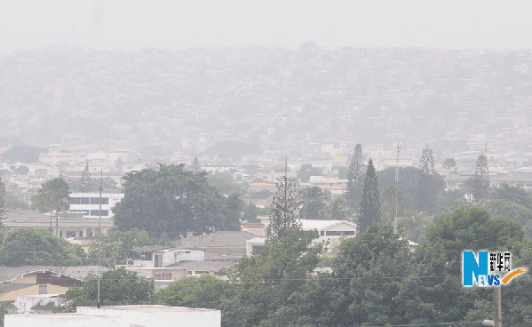 5月28日,厄瓜多爾的瓜亞基爾籠罩在火山灰中。 新華社發(fā)(圣地亞哥·阿馬斯攝)