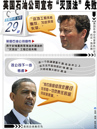 圖表:英國石油公司宣布“滅頂法”失敗 新華社發(fā)。