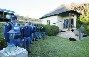 昨日,被劫葡萄牙記者住所,當(dāng)?shù)鼐煺诳辈楝F(xiàn)場。南非糟糕的治安狀況,使得采訪報道世界杯的記者也難以幸免。