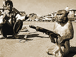 據(jù)英國媒體27日報道,阿富汗的塔利班軍閥們竟想出了一種匪夷所思的方法來對付駐阿盟軍:他們竟將一些愛吃香蕉和花生的猴子訓練成了“致命殺手”,教會了這些猴子如何使用卡拉什尼科夫沖鋒槍、布倫式輕機槍甚至迫擊炮,并教它們?nèi)绾螌iT向穿美軍服裝的士兵發(fā)起襲擊。頗具諷刺意味的是,“訓練猴子當殺手”的主意最早卻是由美國中情局發(fā)明出來的,美國中情局曾在越戰(zhàn)中發(fā)起“香蕉行動”,專門用花生和香蕉當獎品,訓練一些“猴子士兵”在叢林中獵殺越南士兵。