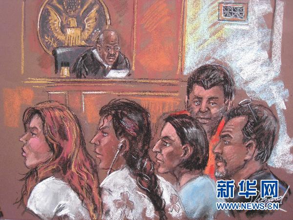 資料圖片:這張6月28日的畫像顯示的是美國紐約方面對(duì)被逮捕的俄羅斯間諜嫌疑人的庭審情況。美國司法部當(dāng)日宣布,聯(lián)邦調(diào)查局日前破獲了一個(gè)在美國為俄羅斯情報(bào)部門招募人員并收集情報(bào)的間諜網(wǎng)絡(luò),截至目前已有10名嫌疑人被捕,另有一人在逃。 新華社/法新