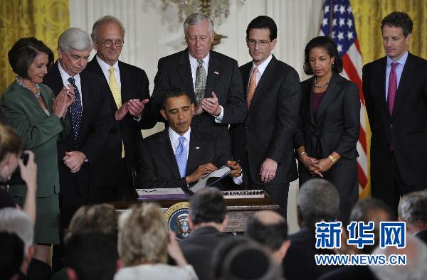 7月1日,在美國首都華盛頓白宮東廳,美國總統(tǒng)奧巴馬(中)簽署對伊朗制裁法案。這項(xiàng)對伊朗實(shí)施單方面制裁的法案6月24日由國會(huì)參議院和眾議院表決通過,需獲總統(tǒng)簽字生效。 新華社記者 張軍 攝