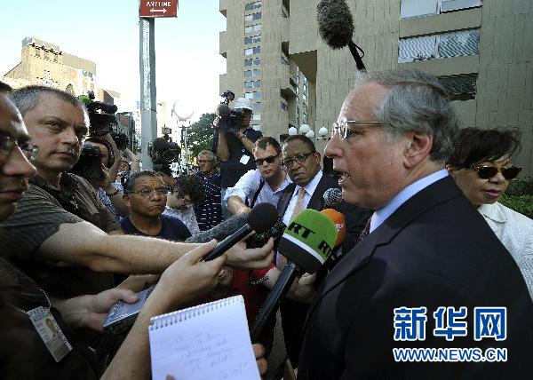 7月8日,在美國紐約曼哈頓聯(lián)邦法院,俄羅斯間諜嫌疑人安·查普曼的辯護(hù)律師羅伯特·博姆接受記者采訪。 俄羅斯克里姆林宮9日說,俄總統(tǒng)德米特里·梅德韋杰夫簽署命令,釋放4名美國間諜及家屬,換取遭美國逮捕的10名俄羅斯間諜嫌疑人。 新華社/法新