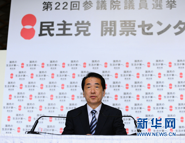 據(jù)日本廣播協(xié)會電視臺報道,日本第22屆國會參議院選舉最終結(jié)果12日凌晨揭曉,日本執(zhí)政聯(lián)盟在11日舉行的參議院選舉中失利,在野黨占據(jù)了參議院過半數(shù)議席。執(zhí)政的民主黨代表(黨首)、首相菅直人表示不會辭職。