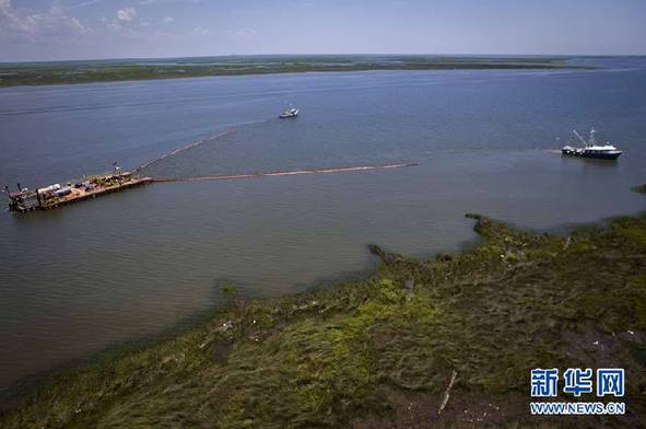 7月8日,在美國路易斯安那州斯萊德爾附近的龐恰特雷恩湖,工作船收集泄漏原油。美國得克薩斯州官員5日證實,該州東部海灘發(fā)現(xiàn)來自墨西哥灣漏油油井的油球。這表明,墨西哥灣泄漏的原油已擴散至美國墨西哥灣沿岸所有5個州。當(dāng)?shù)孛襟w報道說,從東部的佛羅里達到西部的得克薩斯,報告發(fā)現(xiàn)油污的范圍已橫跨近900公里。新華社/路透