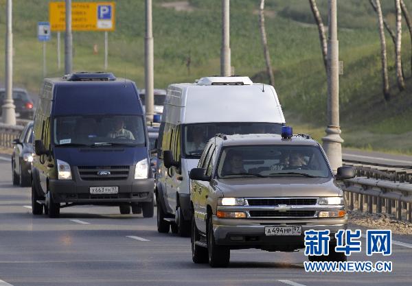 7月9日,載有被美國驅(qū)逐出境的俄羅斯間諜嫌疑人的車隊從俄羅斯的多莫杰多沃機場駛向莫斯科市區(qū)。美國司法部當天證實,美國和俄羅斯已經(jīng)在奧地利首都維也納成功完成間諜交換。 新華社/路透