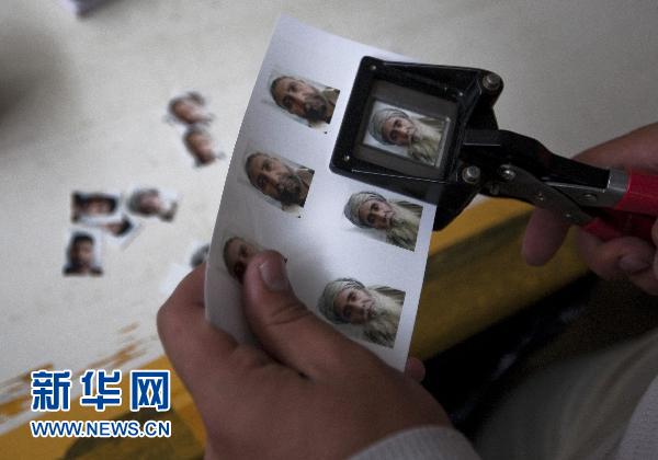 7月12日,在阿富汗首都喀布爾的選民登記中心,一名工作人員在剪裁選民的照片。 阿富汗議會選舉將于9月18日舉行。 新華社/路透