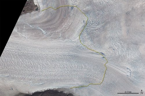 據(jù)中國之聲《新聞縱橫》8時(shí)30分報(bào)道,美國的冰川研究人員利用衛(wèi)星持續(xù)對(duì)格陵蘭島最活躍的幾座冰川進(jìn)行監(jiān)測,他們發(fā)現(xiàn)有著格陵蘭冰川之母之稱的Jakonbshavn冰川的北翼一夜之間就消退了1.61公里。美國宇航局冰凍圈項(xiàng)目的科學(xué)家瓦格納說,在幾個(gè)晚上之前,這座冰川上就裂了一個(gè)大縫,兩個(gè)晚上之后,冰塊就從冰川上脫落了,隨著水飄走,脫落部分的面積大約是曼哈頓島1/8這么大,創(chuàng)下了冰川縮小最快速度的新記錄。但是這還沒完,7月12日研究人員又在這座冰川的南翼發(fā)現(xiàn)了一個(gè)新裂縫,這個(gè)裂縫更大,是否會(huì)產(chǎn)生一個(gè)新浮冰目前還不得而知。