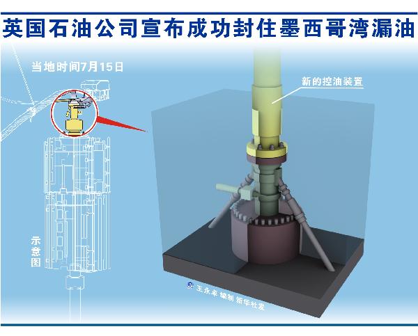 英國石油公司15日宣布成功封住墨西哥灣漏油