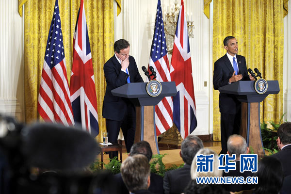 7月20日,在美國首都華盛頓白宮東廳,美國總統(tǒng)奧巴馬與到訪的英國首相卡梅倫在會見后出席聯(lián)合新聞發(fā)布會。 新華社記者 張軍 攝