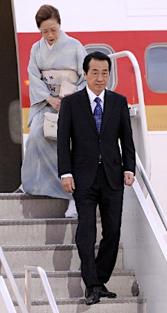 日媒曝菅直人“擺譜” 丟下夫人獨自下飛機(圖)