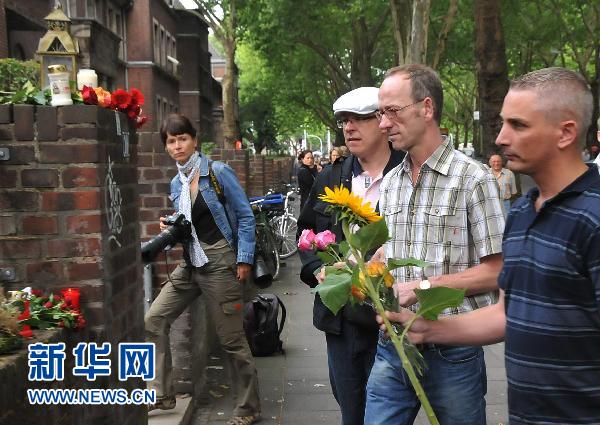 7月25日,在德國杜伊斯堡,當地民眾在踩踏事件發(fā)生地附近為遇難者獻花。新華社記者胡小兵攝