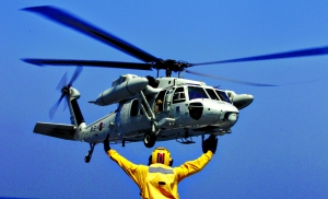 8月5日,“獨(dú)島”號(hào)上的船員指揮直升機(jī)。