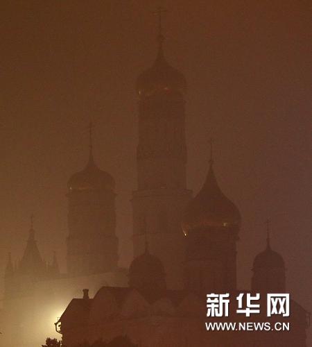 受周圍森林火災(zāi)影響,莫斯科被煙霧籠罩。圖為8月4日拍攝的莫斯科克里姆林宮內(nèi)的教堂。