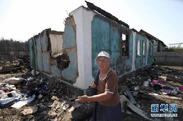 資料圖片:8月1日,在俄羅斯的沃羅涅日,一名婦女站在被大火燒毀的房屋前。 新華社/法新