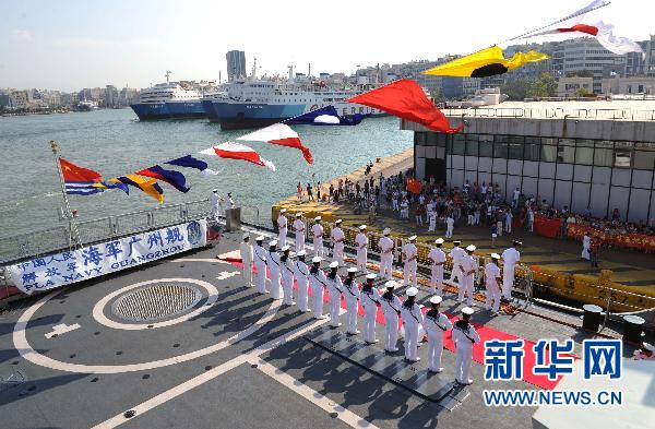 8月9日,中國海軍護(hù)航編隊中的“廣州”艦抵達(dá)希臘的比雷埃夫斯港。新華社記者劉春暉攝